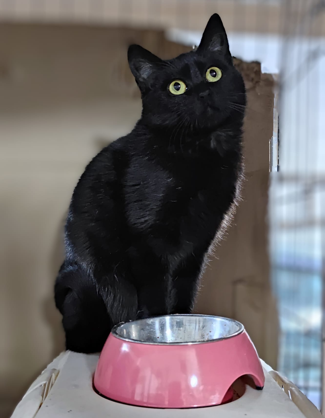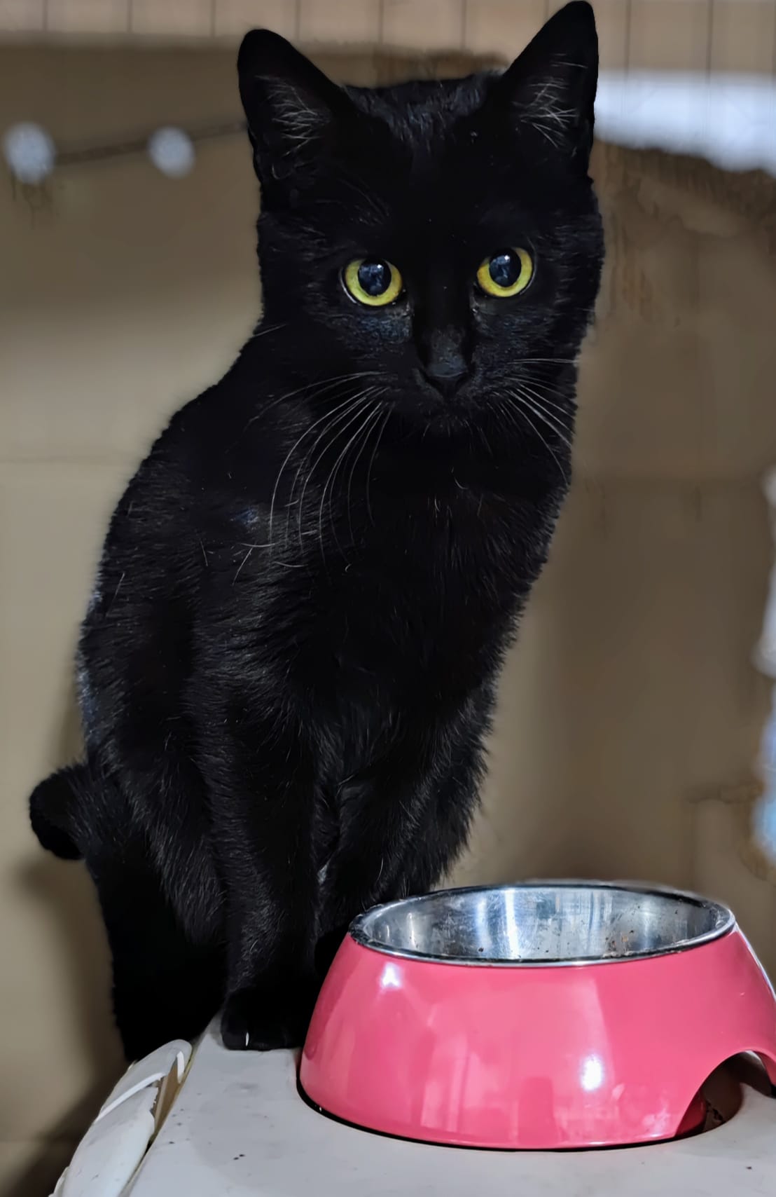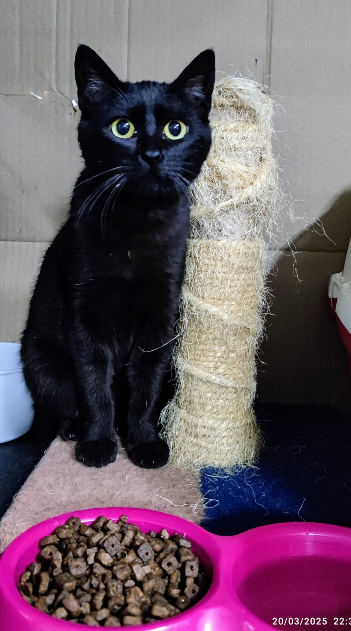 Pipa fue rescatada de un garaje en el que se refugió corriendo mucho peligro, porque no la querían. Vino con una herida muy fea en la espalda, de la que ya está recuperada. Es una gatita muy sociable con todos los gatos.