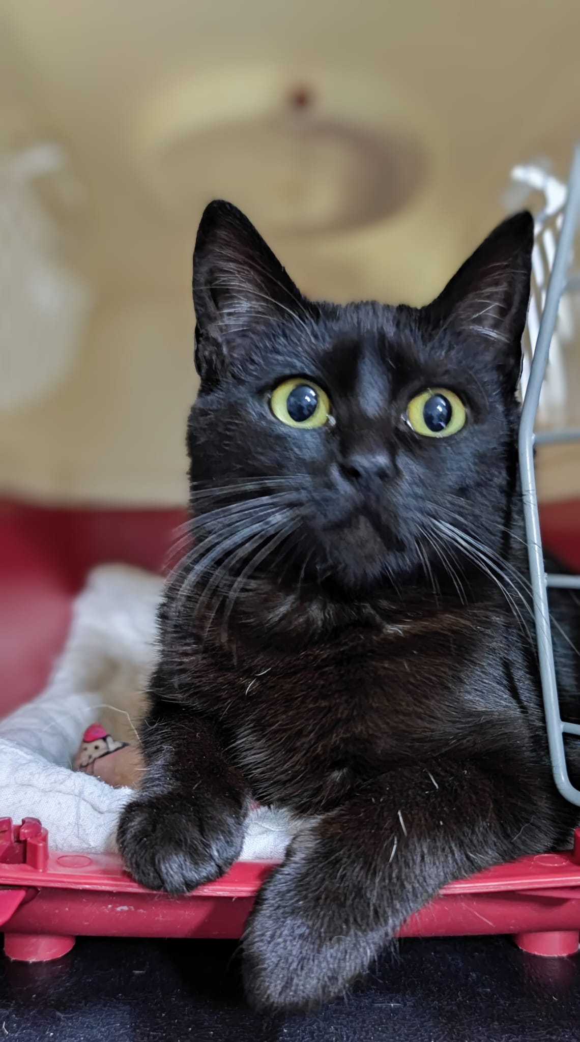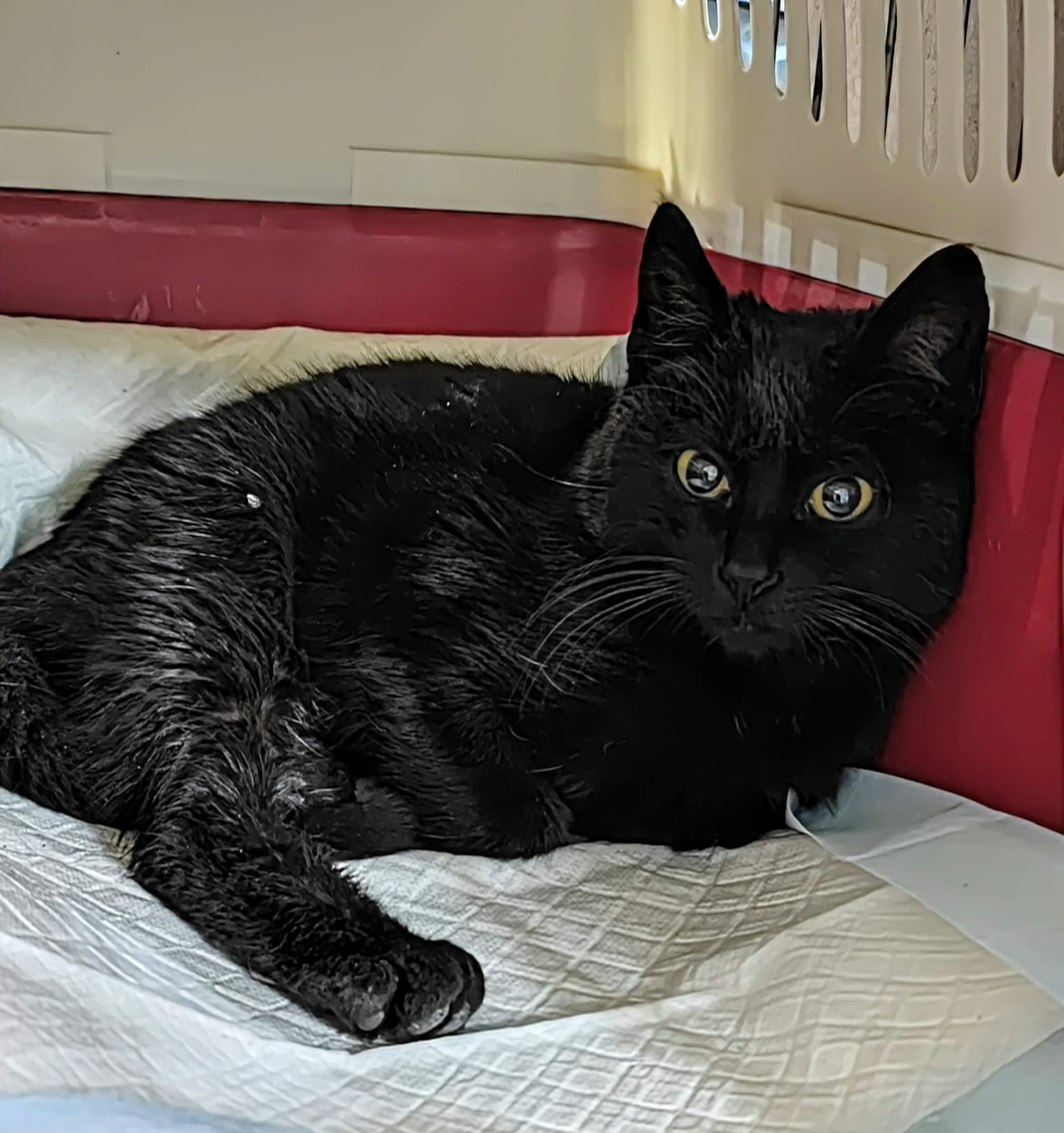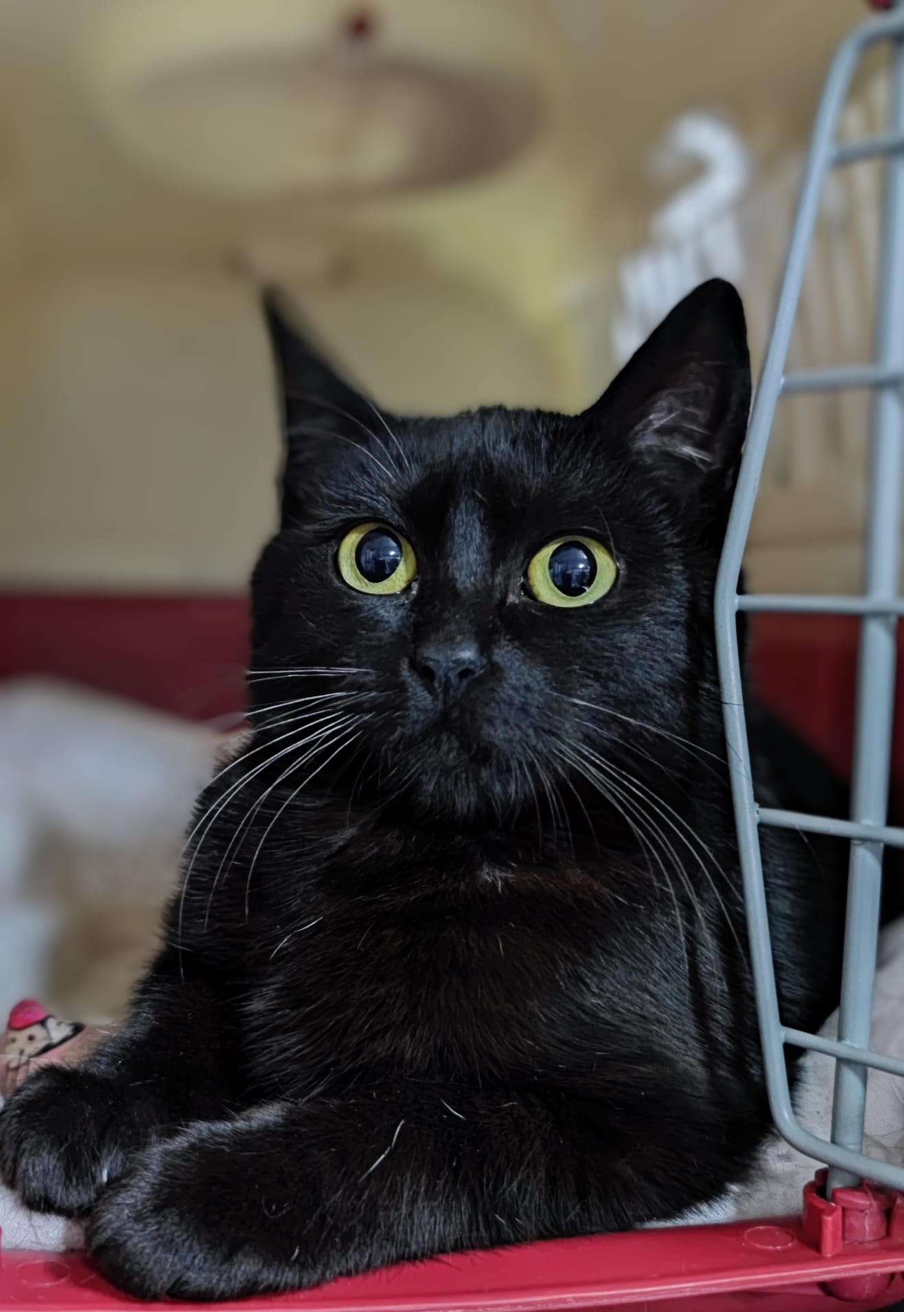 Pipa fue rescatada de un garaje en el que se refugió corriendo mucho peligro, porque no la querían. Vino con una herida muy fea en la espalda, de la que ya está recuperada. Es una gatita muy sociable con todos los gatos.